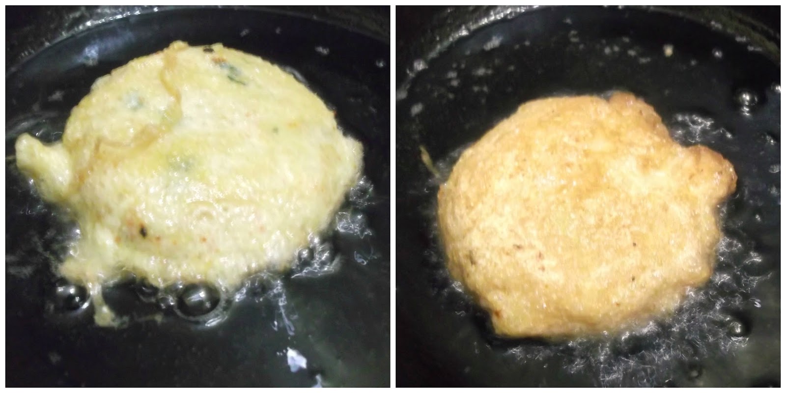Always use kadai for frying, Since the pattice are heavy do not attempt putting it over oil like we do for pakodas, it might take no time to spill the hot oil over your body. Be careful while flipping as well, do it slowly dont be in hurry! The same goes in using fry pan, it has high chances of spilling oil over you without you really noticing it!! I already burnt my left hand that way!! It is all like handle with love and care.